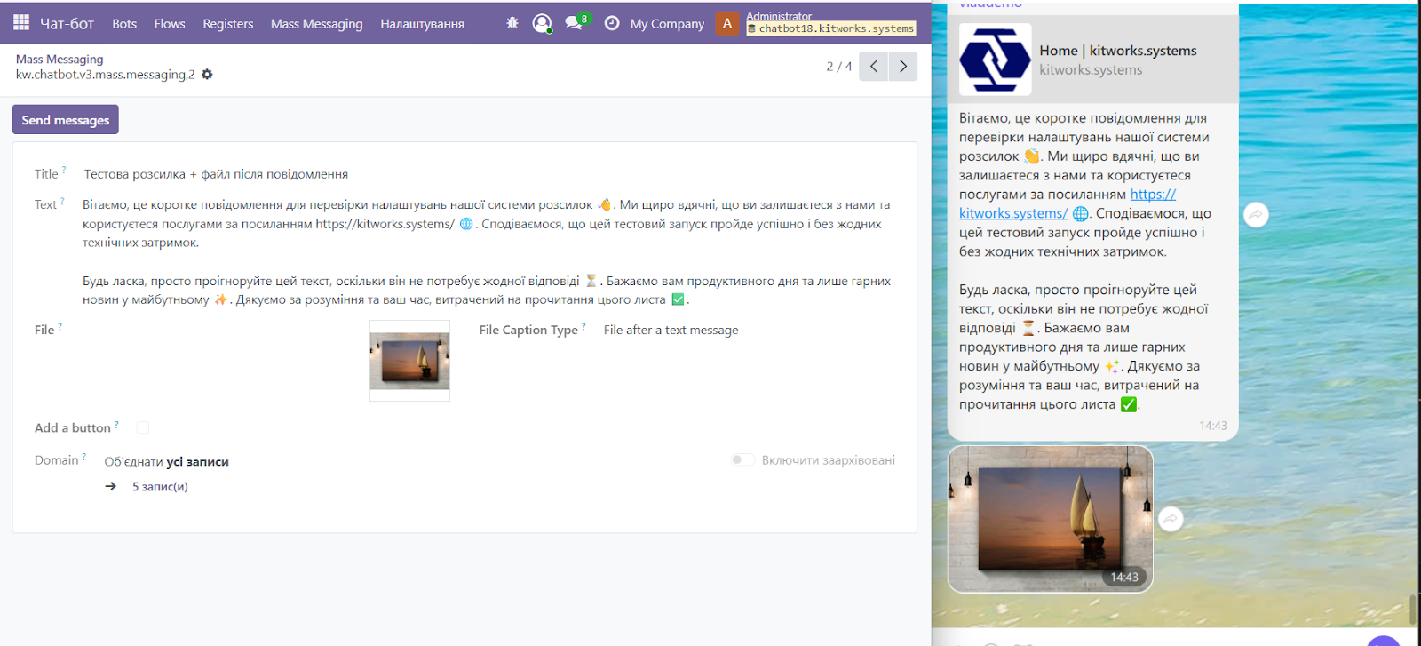 - Масові персоналізовані розсилки: Інструмент для маркетингу, який дозволяє робити розсилки по всій базі або сегментах клієнтів, підписаних на бота.